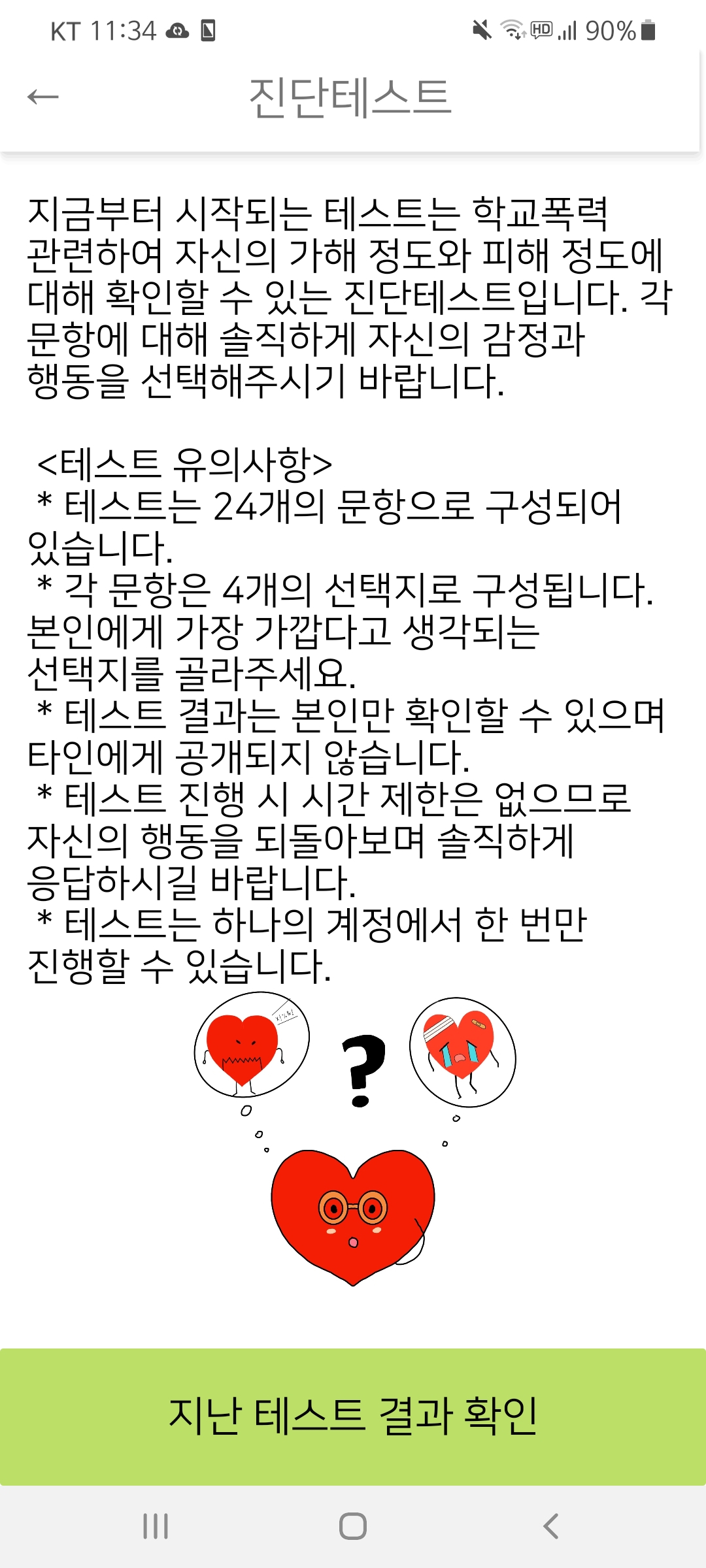앱에서 제공하는 진단테스트, 상담 채팅 기능에서는 한 화면에 많은 양의 텍스트가 보이는데