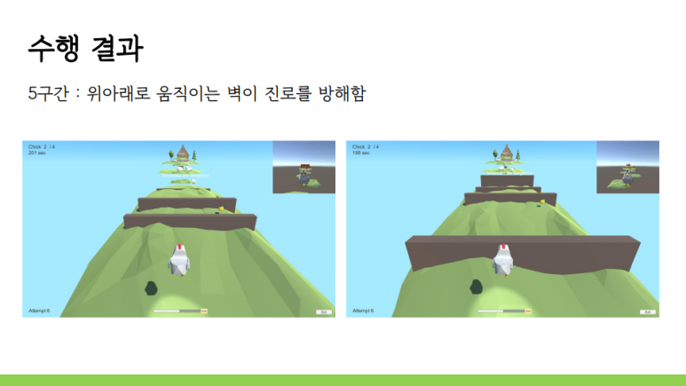 닭의 진로를 방해하는 장애물들은 반복적으로 좌우 또는 상하로 이동한다.