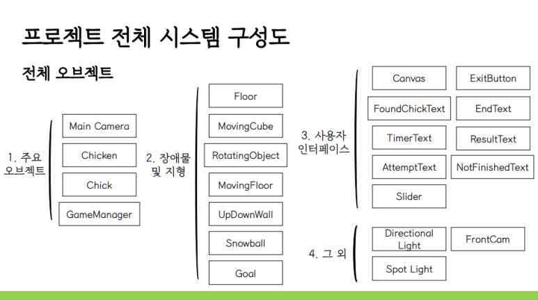 먼저 오브젝트는 주요 오브젝트, 장애물 및 지형, 사용자 인터페이스, 그 외의 오브젝트로 나눌 수 있다.